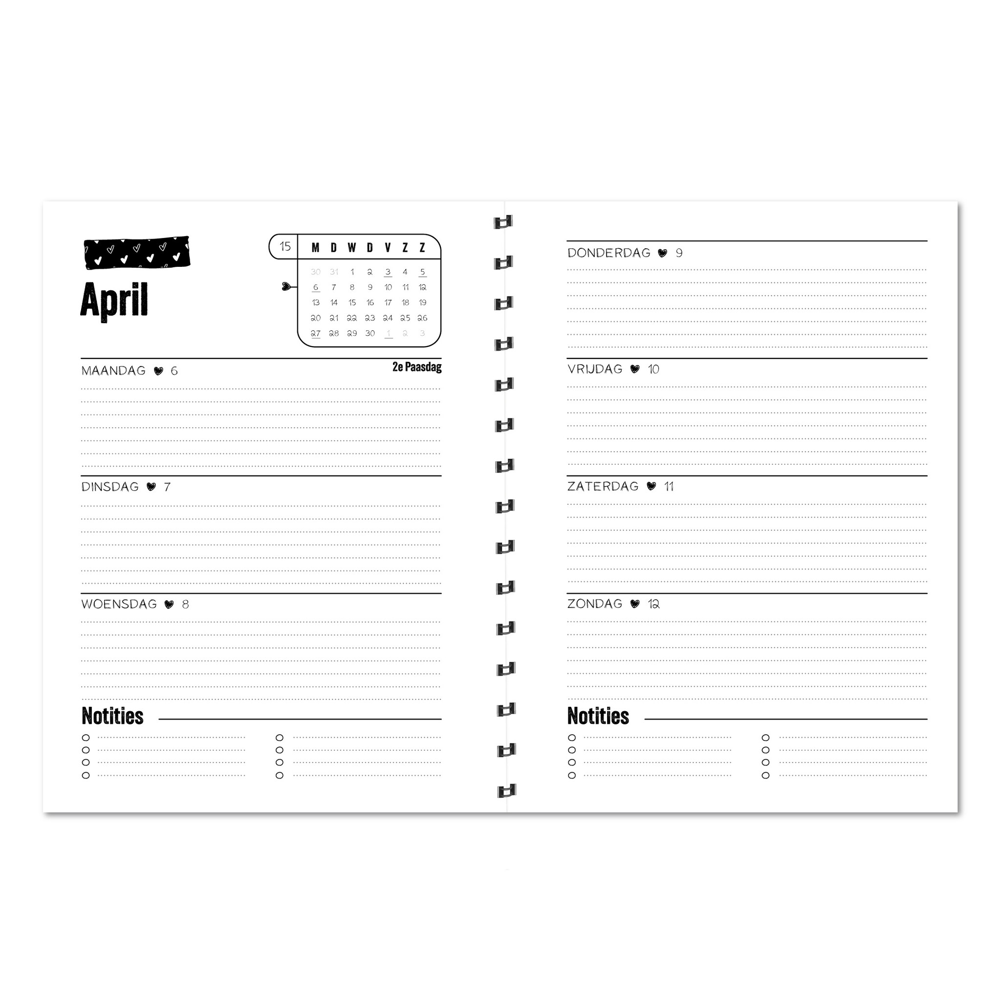 - In de agenda vind je invulbladen en veel ruimte voor notities;