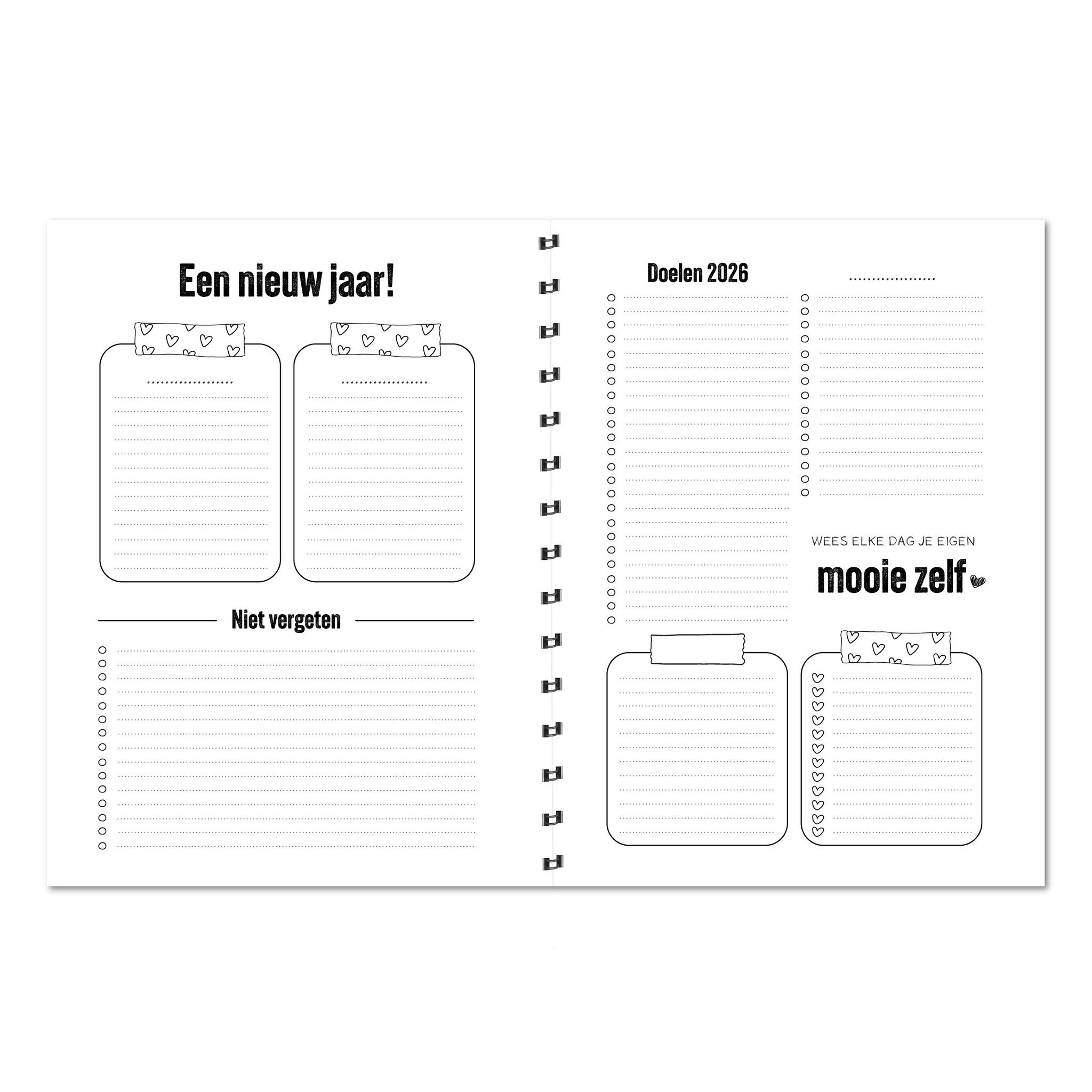 - Op de laatste pagina's van het jaar vind je nog diverse invulbladen om alvast je ideetjes, afspraken en doelen voor 2027 te noteren;