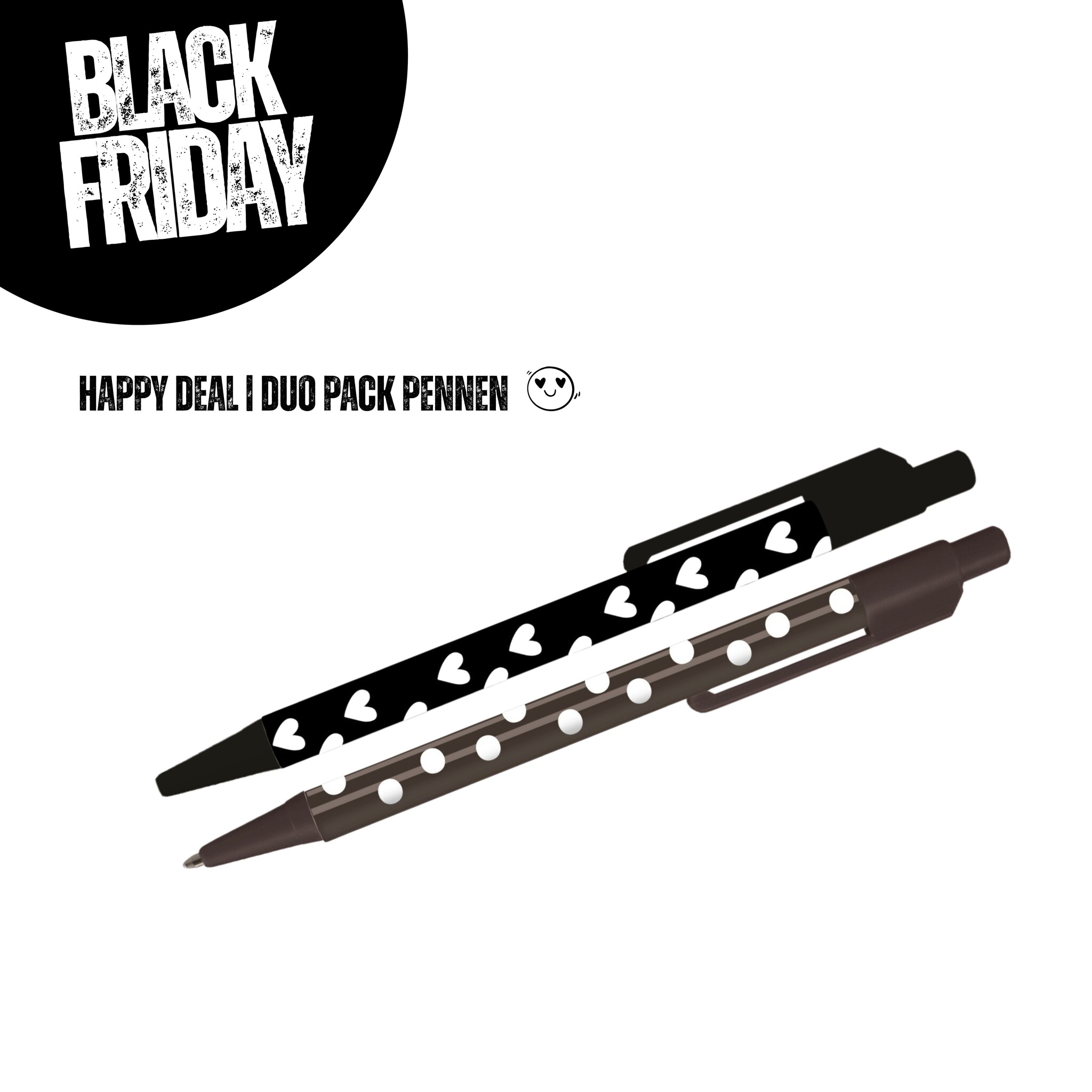 Black Friday deal: je ontvangt één retro brown pen en één pen met hartjes.