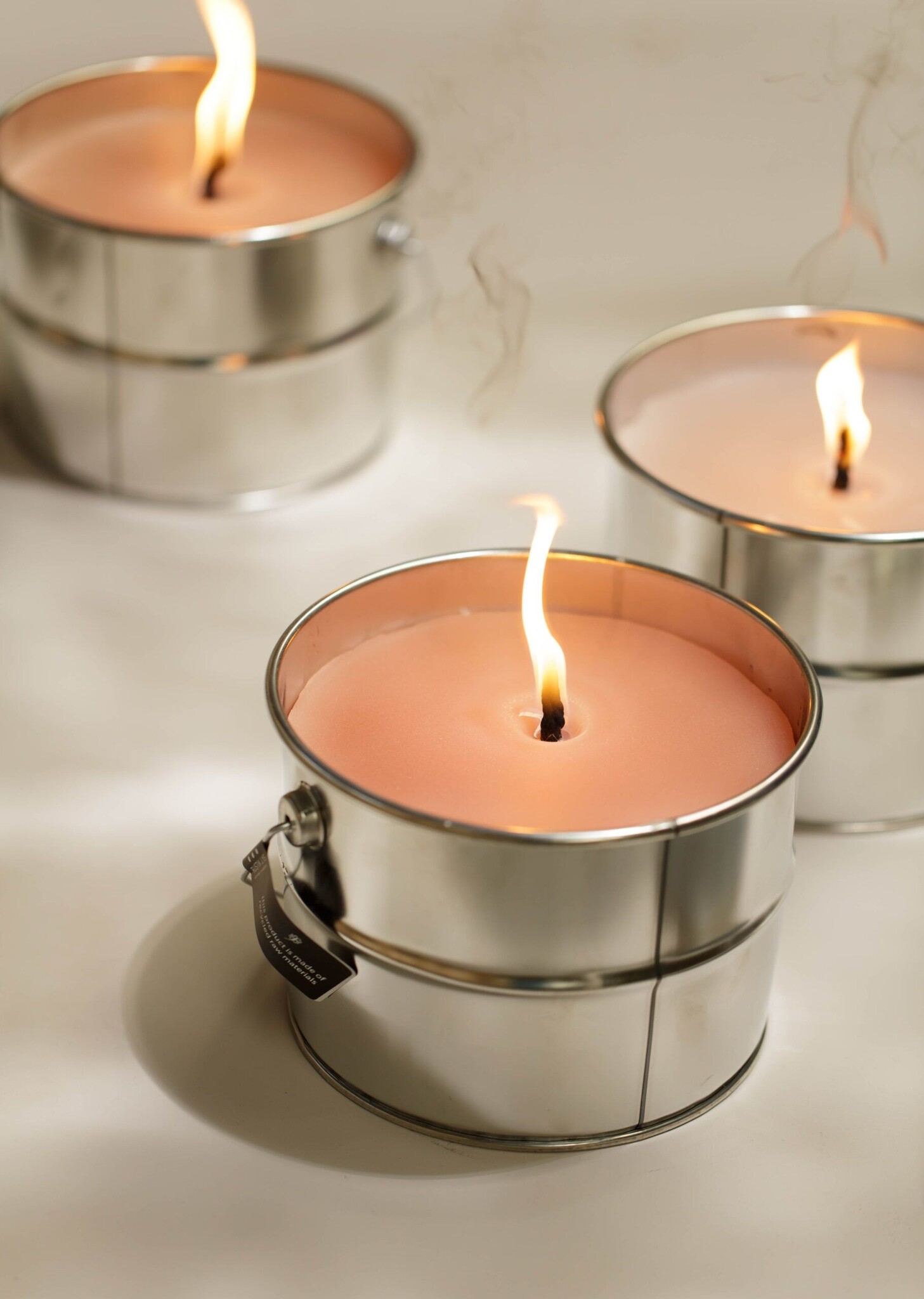 De kaars is gemaakt van recyclede paraffine.