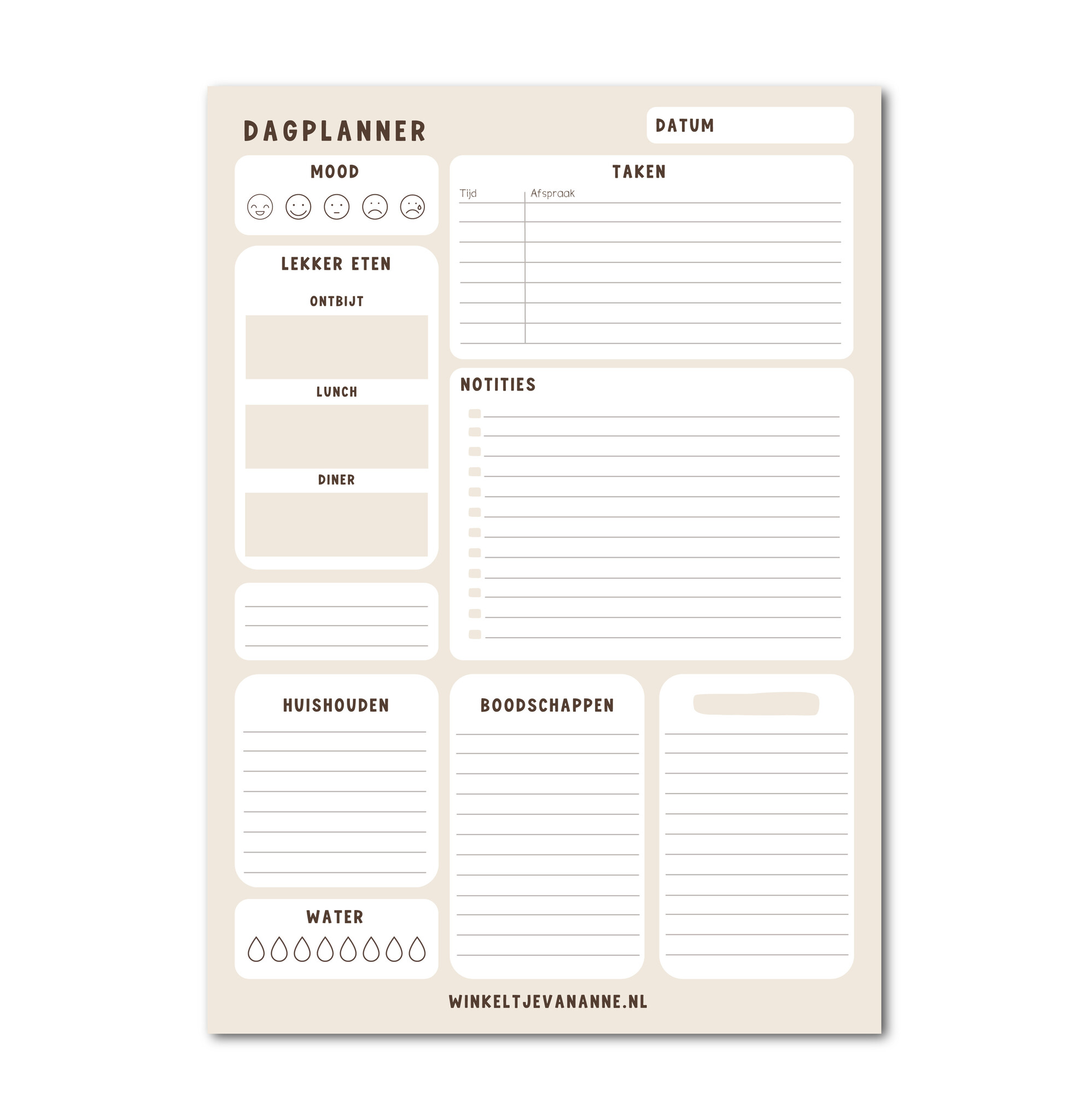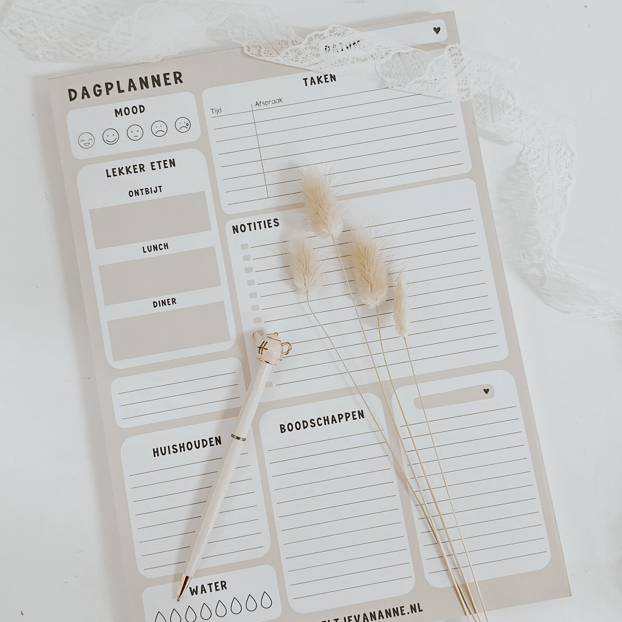 Deze planner is ontworpen om jou te helpen het beste uit je dag te halen, zonder ingewikkeld gedoe. Gewoon lekker opschrijven, afvinken, plannen en vooral doen.