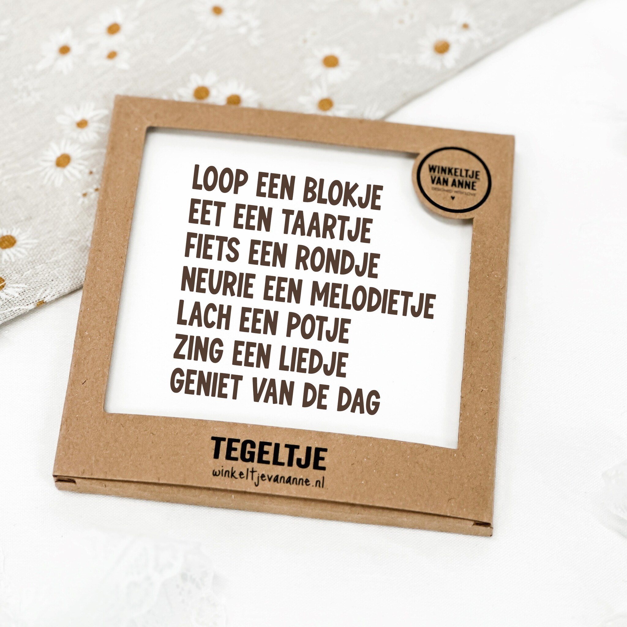 Ontdek onze originele teksten op duurzame Forex tegeltjes! Formaat: 12,5 x 12,5 CM en 0,3 CM dik.