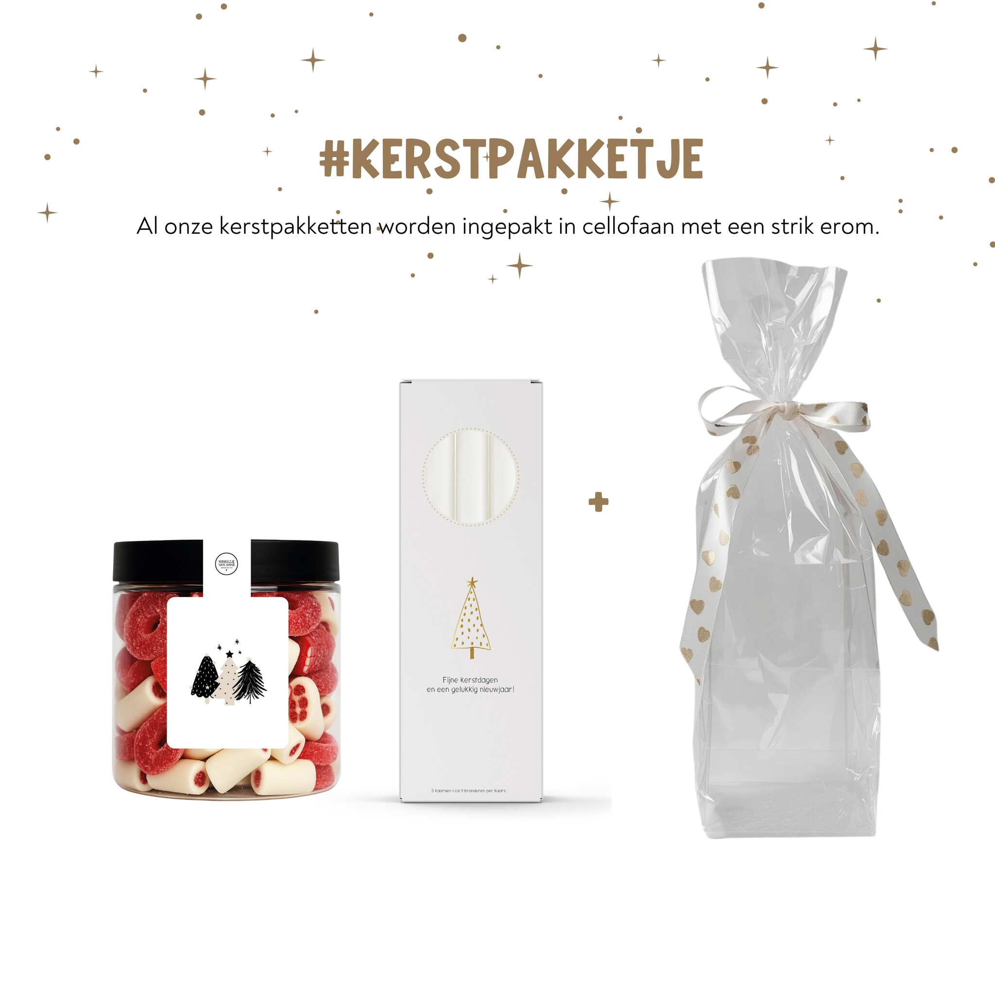 Kerstpakket | Smulpotje boompjes en kaarsen | In cellofaan