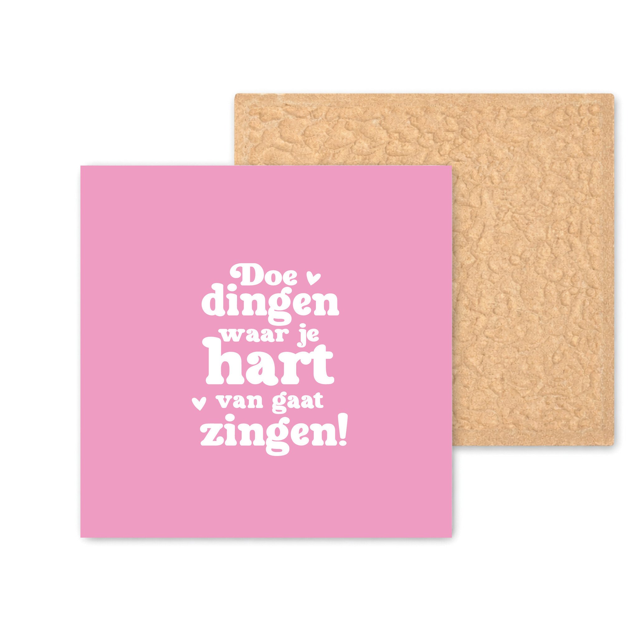 Het formaat is 11 × 11 centimeter en hebben een dikte van ca 6MM. Perfect om neer te zetten op een plank, bureau of dressoir, of om cadeau te geven aan iemand die je lief vindt. Wil je het tegeltje mooi neerzetten? Dan kun je een losse tegelhouder erbij bestellen, zodat het tegeltje altijd goed tot zijn recht komt.