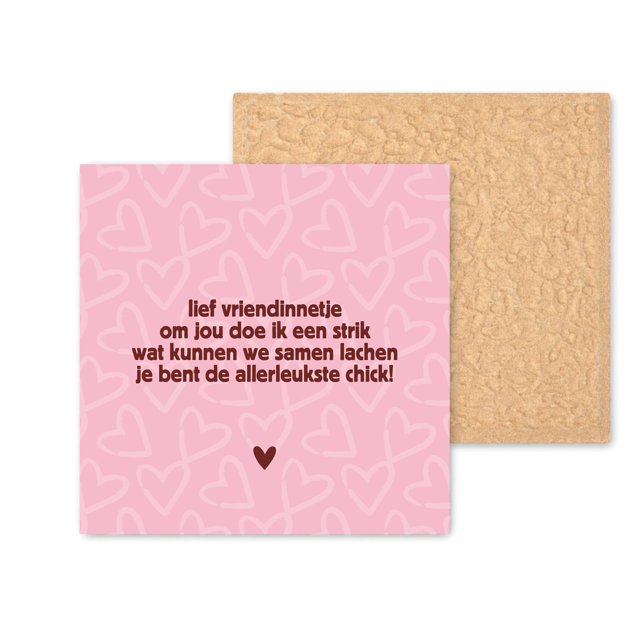 Het formaat is 11 × 11 centimeter en hebben een dikte van ca 6MM. Perfect om neer te zetten op een plank, bureau of dressoir, of om cadeau te geven aan iemand die je lief vindt. Wil je het tegeltje mooi neerzetten? Dan kun je een losse tegelhouder erbij bestellen, zodat het tegeltje altijd goed tot zijn recht komt.