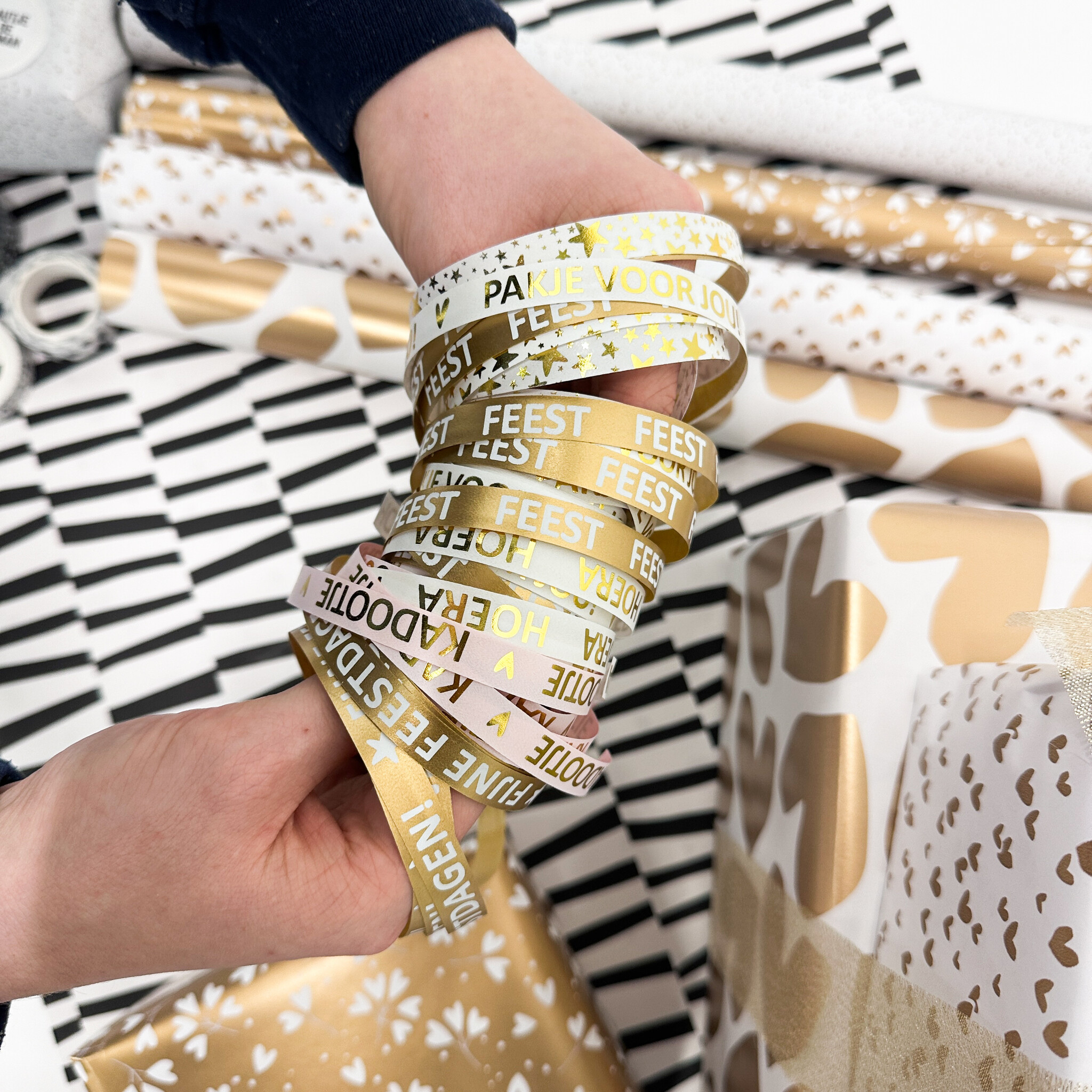 Mix & match met het prachtige inpakpapier in dezelfde kleuren en maak van ieder cadeautje een feestje!