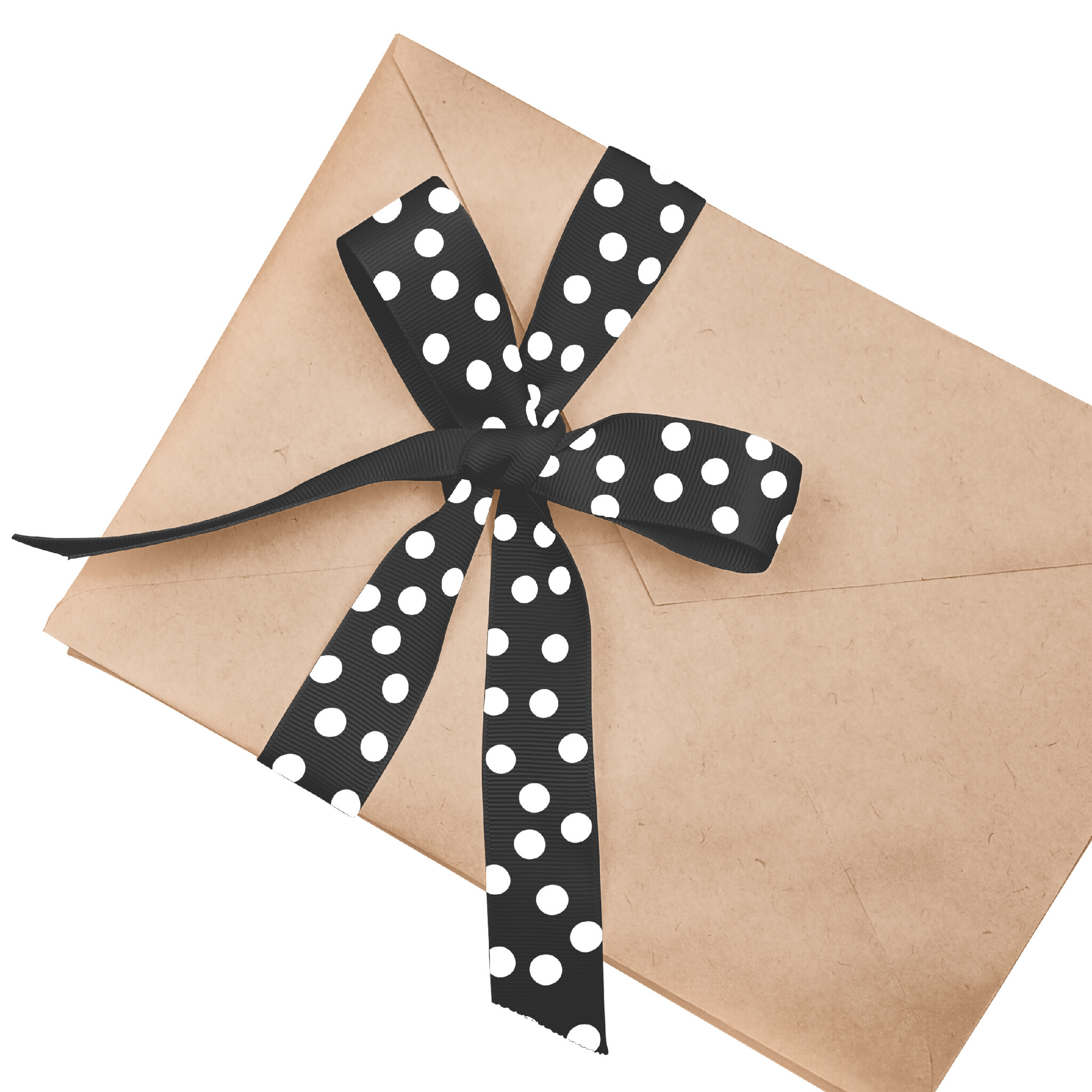 Dit prachtige grosgrain witte lint met zwarte stippen is mooi stevig en goed te gebruiken voor al je cadeautjes!