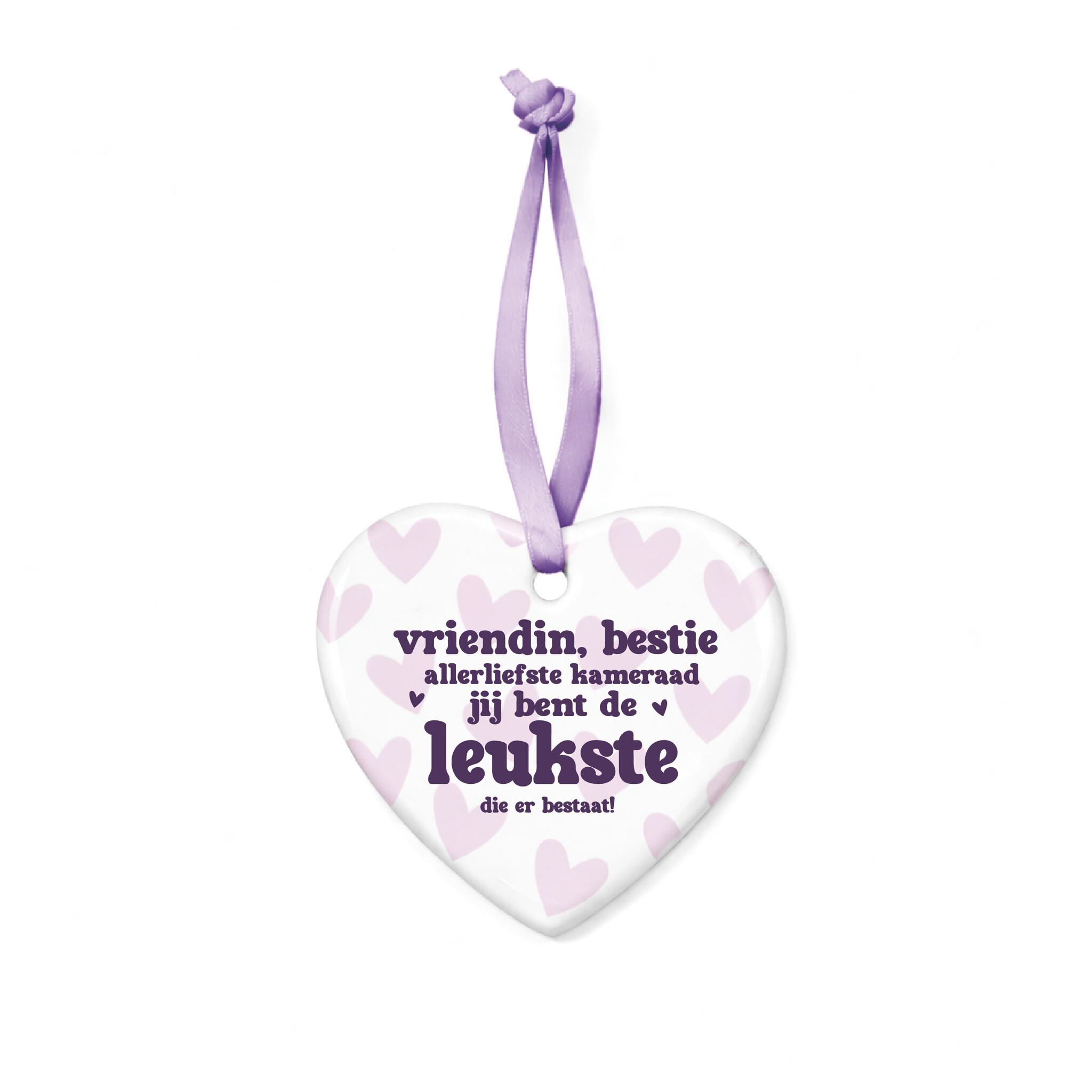 Onze porseleinen hartjes aan een mooi zijdeglans lint, met de mooiste teksten, zijn perfect als klein cadeautje. Kies een tekst die past bij jou of bij de ontvanger. Bekijk de productomschrijving voor alle informatie.
