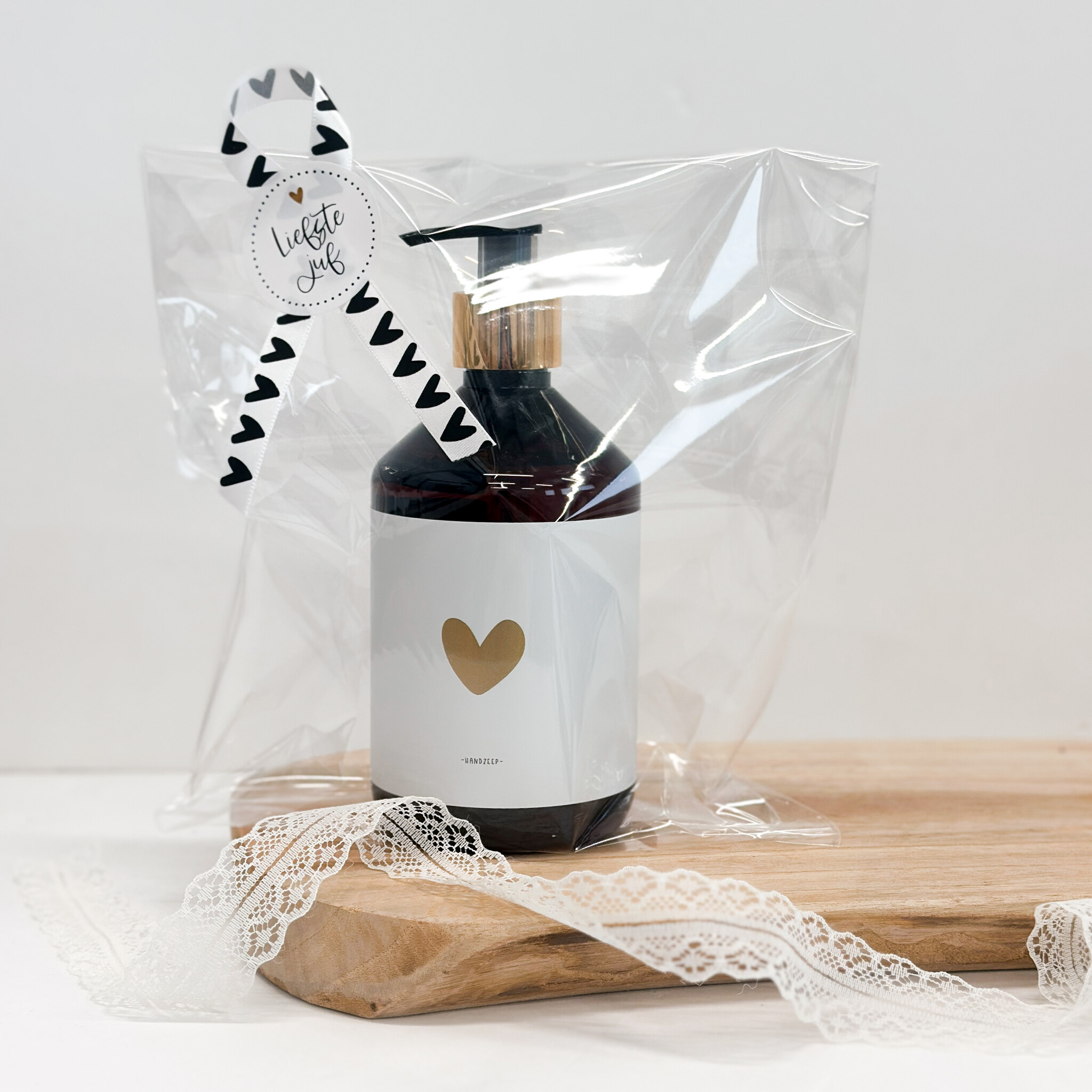 Luxe handzeep | Hartje Goud | Voor de juf | In Cellofaan
