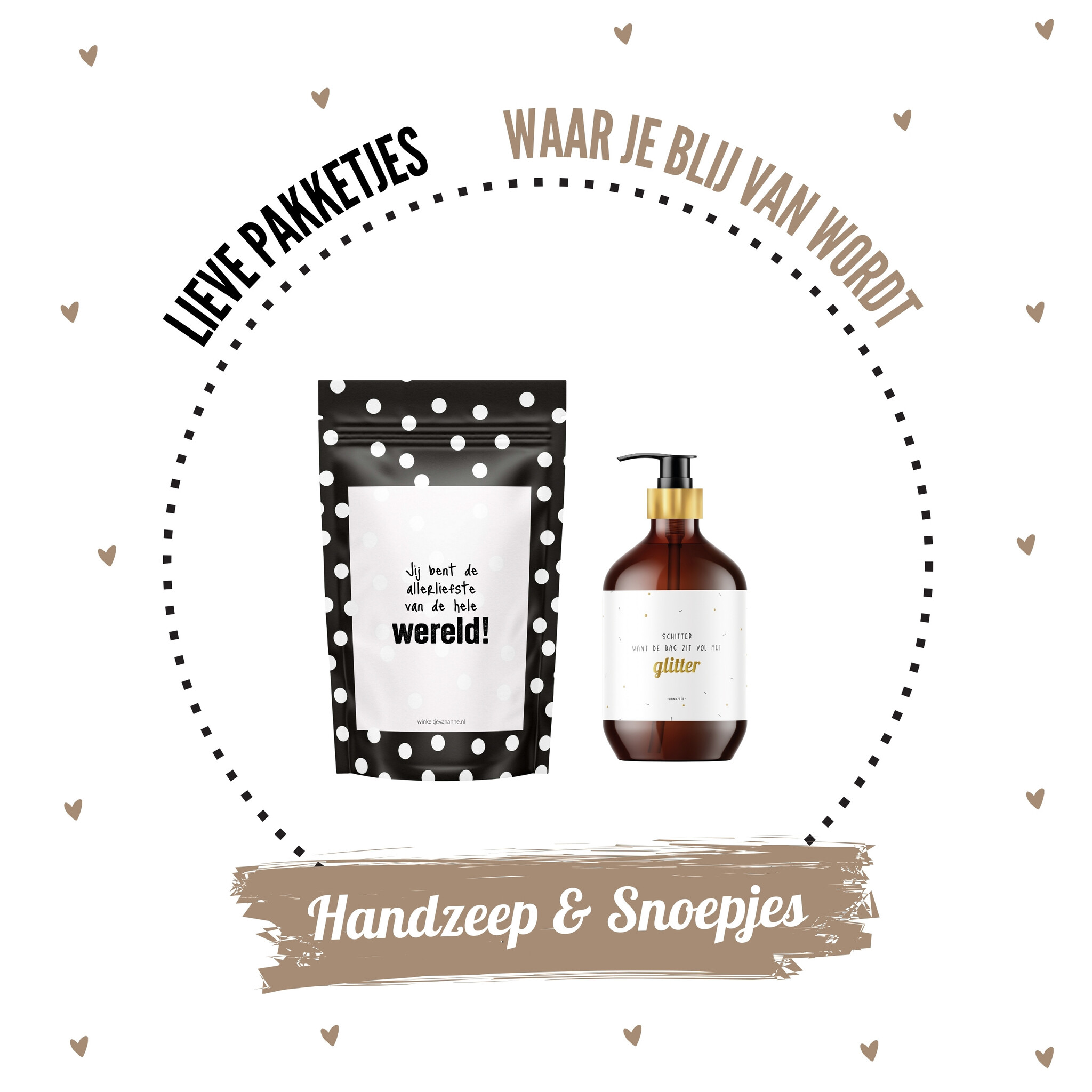 Heb je een ander ontwerp snoepzak of handzeep uit onze collectie gezien en past dit beter in jouw pakketje? Geen probleem! Geef je voorkeur aan in het veld ‘opmerkingen' bij dit product en wij wisselen het voor je om. Zo maak je het pakket helemaal naar wens.