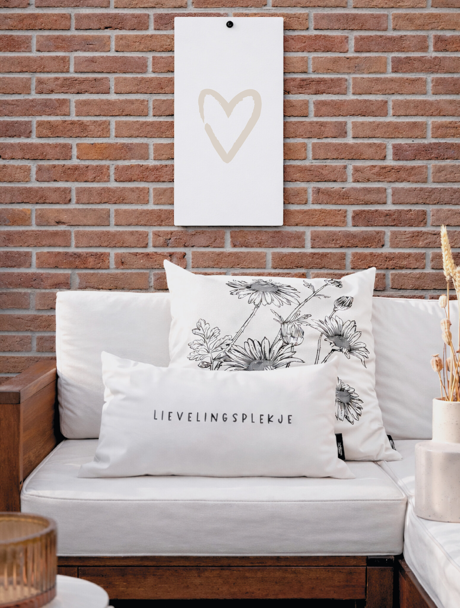 Muurplaat | Hart beige | Painted brush