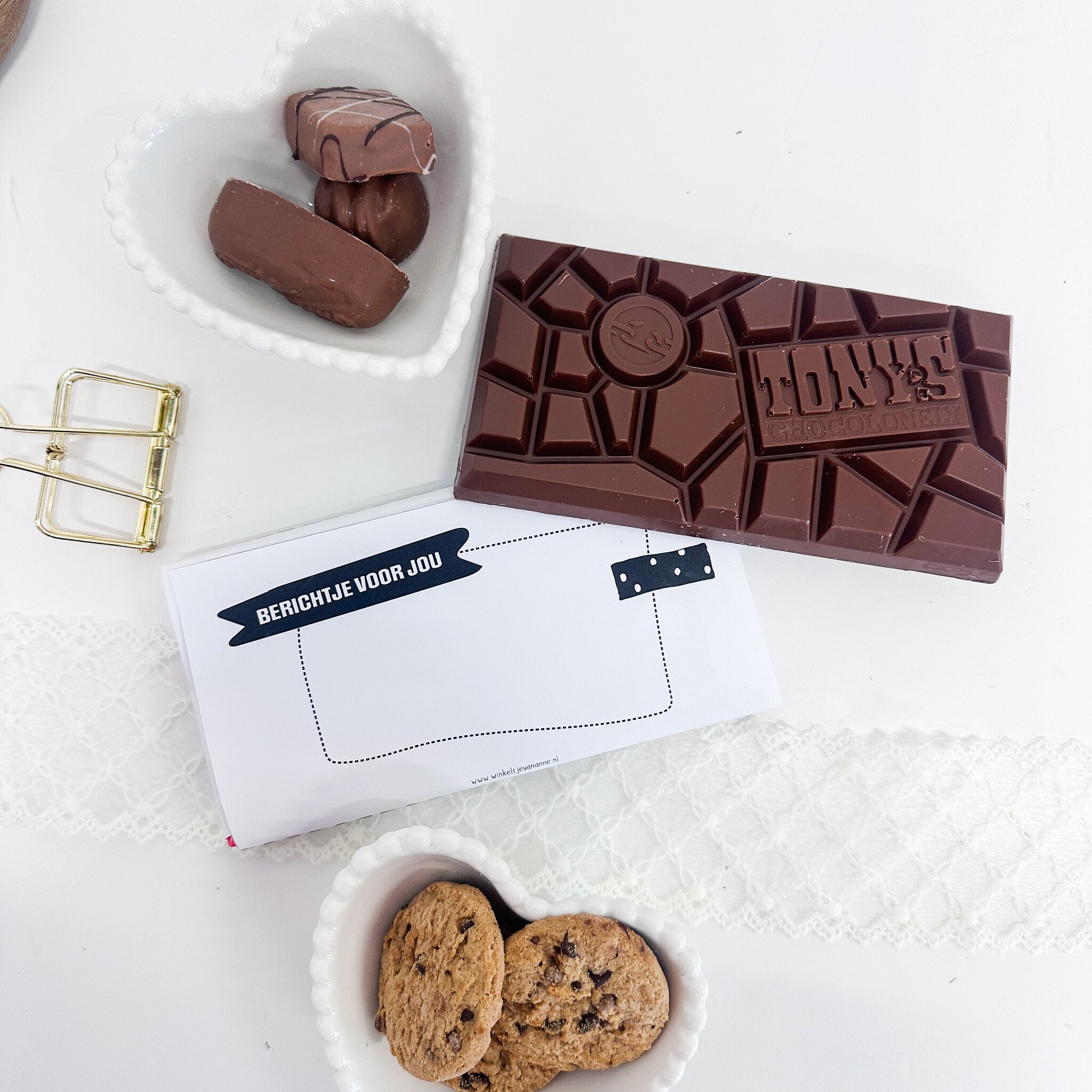 Verras de meester met een heerlijke Tony's reep! Knutsel de wikkel zelf om de reep heen en schrijf een lieve boodschap op de achterkant. Je ontvangt een reep naar keuze + een leuke printable. Lees de productomschrijving voor alle informatie.