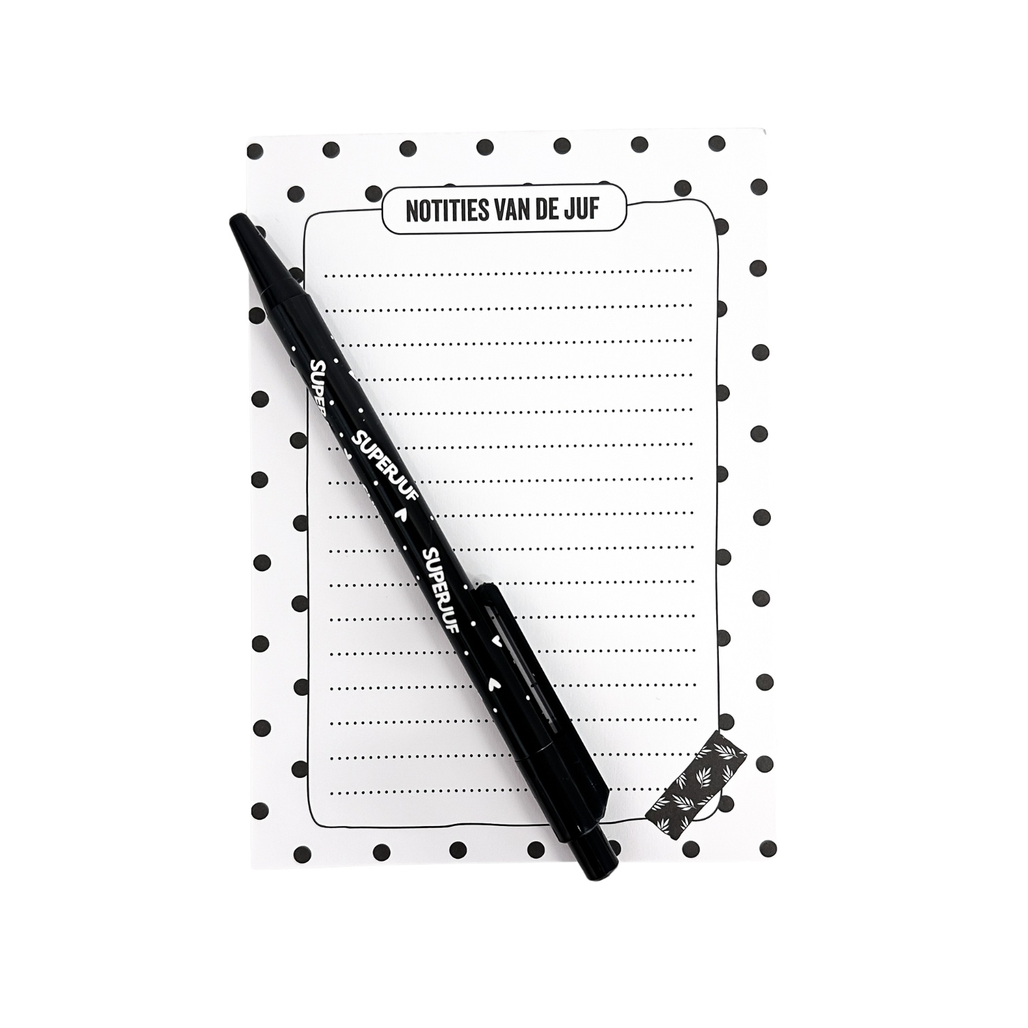 Deze voordeelset bestaat uit een notitieboekje en een pen voor de juf.